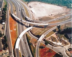 O horizonte expande-se numa linha superior de concreto que